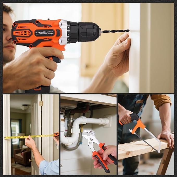 - All-in-One Home Toolkit: The 255-piece power tool combo kits includes a 12V cordless drill, manual tools, perfect for home repairs, DIY projects, and general maintenance. The toolbox combines style and functionality with a removable sliding drawer and compartmentalized storage, ensuring easy access and portability for multi-scene use.
