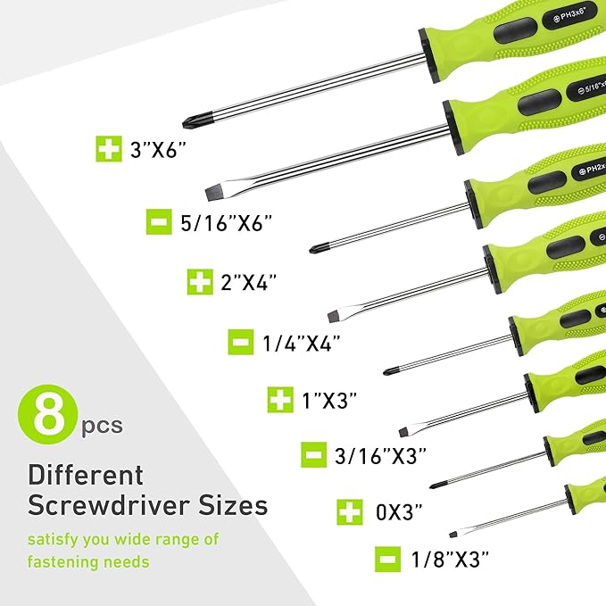 - MULTI-SIZE TIPS: Each handheld screwdriver kit includes (4) Phillips head screwdrivers, (4) slotted flat head screwdrivers and (4) Precision Screwdrivers ,the variety of tip sizes and types to satisfy you wide range of fastening needs.