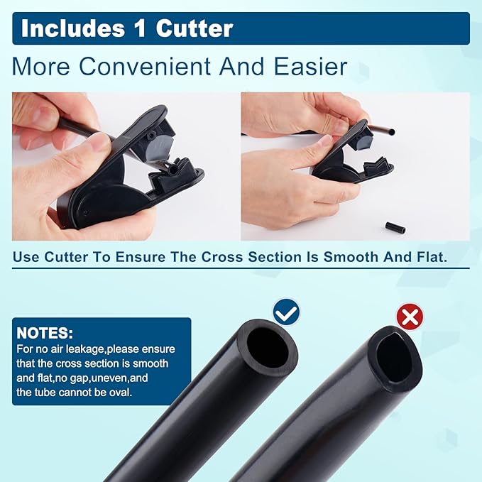 - 【Includes 1 Cutter】For no air leakage, the cross section of the air line must be smooth and flat, no gap, uneven, and the tube cannot be oval. Our air tubing come with a tube cutter to make cutting more convenient and easier