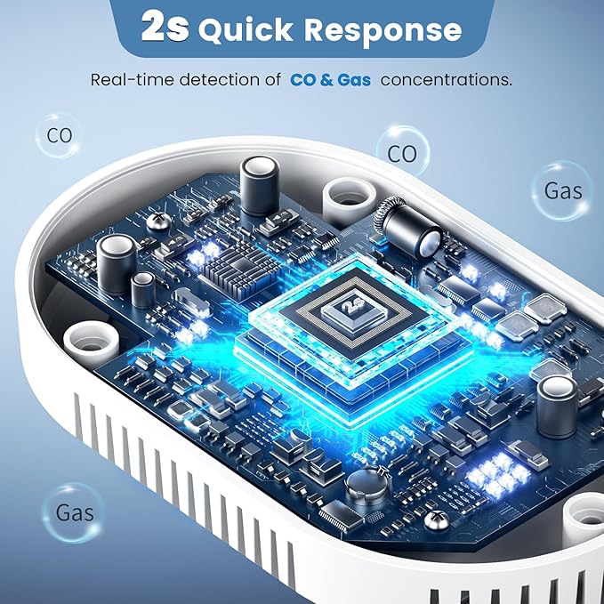 - 【Highly Accurate & Sensitive Sensors】Equipped with upgraded, professional-grade sensors to ensure fast, reliable, and precise detection of gas and CO levels, helping protect your family from invisible threats.