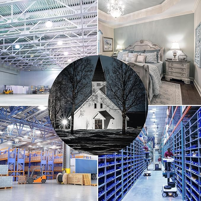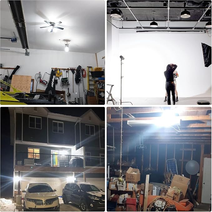 - WIDE COVERAGE: 360-degree beam angle ensures complete illumination coverage, eliminating dark spots in garages, workshops, and outdoor spaces