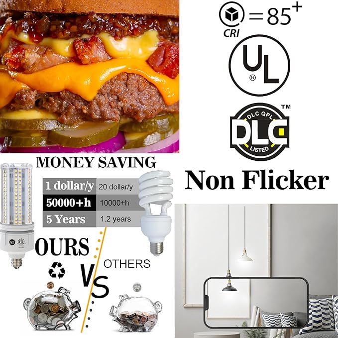- SUPER BRIGHT: Each LED corn bulb produces 7530 lumens of cool white light at 6000K color temperature, perfect for large spaces and high-ceiling areas