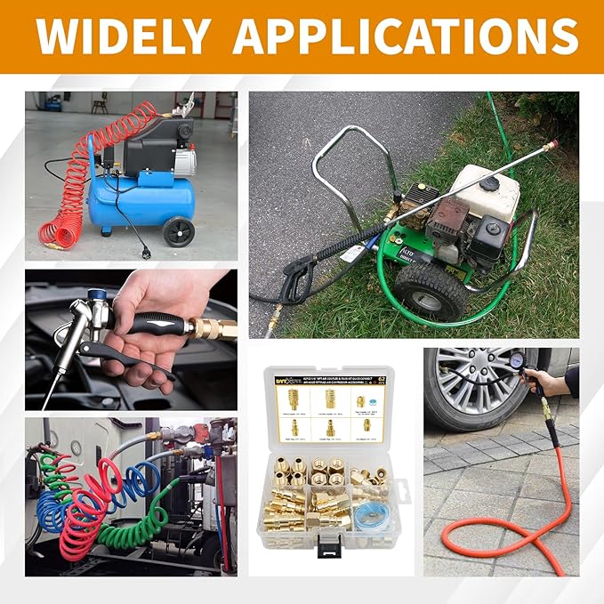 - WIDE APPLICATION: Our 1/4 " air couplers and air plugs kit applied to workshops, automotive shops, garages for air hoses, air compressors, air tools, air nailers, air blow guns,pressure washer, etc