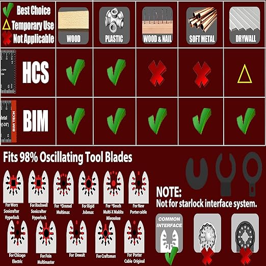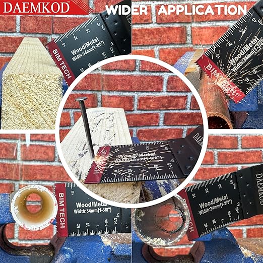 - 【Wider range of use】Bi-metal multi tool blades kits can cut soft metals, hard wood, PVC, copper-pipes, and hard plastics. It can be used for house decoration, door and window repair, floor cleaning, bathroom decoration and other scenes.