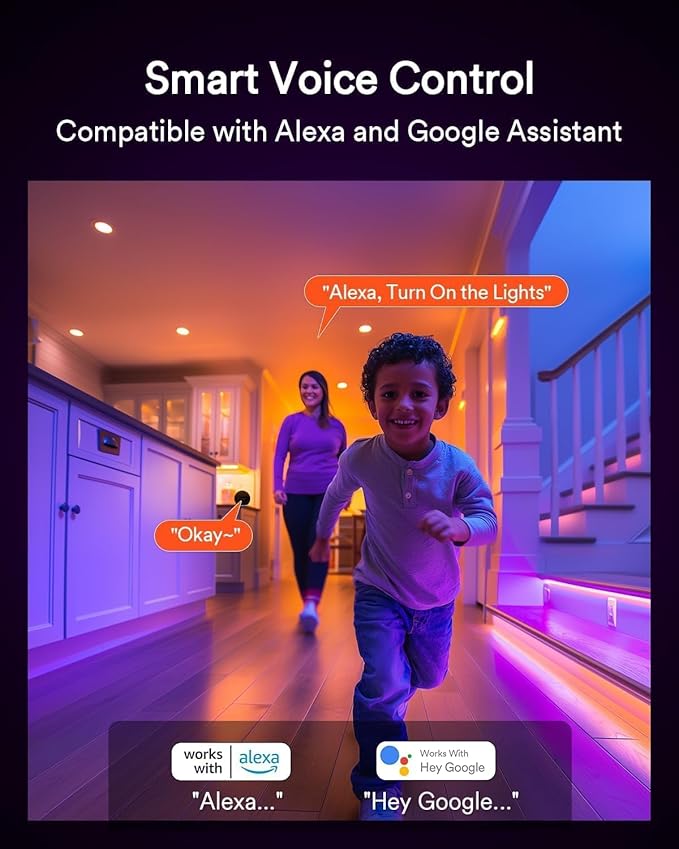 - Multiple Smart Control: ①It works with Alexa, Google assistants, allowing you to adjust the lights effortlessly through voice commands. ② With Lumary APP, you can freely customize color and brightness. ③Use the Lumary dedicated wall switch(sold separately) for easy control by the elderly and children. ④Can also be controlled by lumary remote(sold separately). Note: The lights only support 2.4GHz WiFi