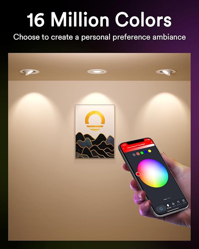 - Endless Colors, Endless Moods: This color changing recessed light offers 16 million colors, allowing you to choose the perfect hue to match any area or object, enhancing overall space harmony. With a CCT 2700-6500K, it provides both bright illumination and cozy amber light. Ideal for lighting areas with changing scenes