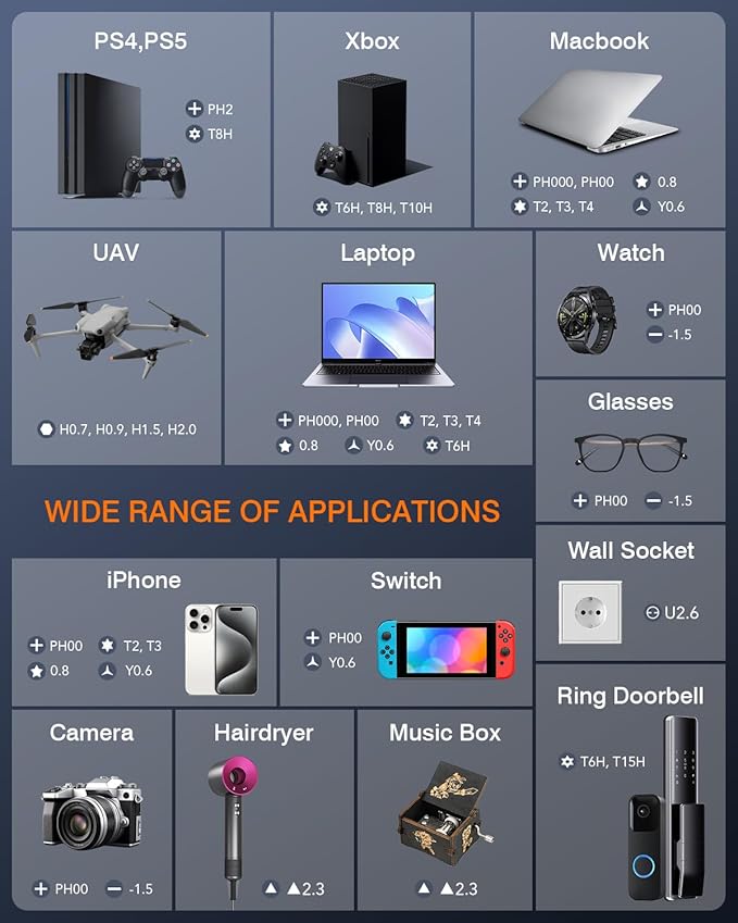 - 【Widely Applications】The electric screwdriver is ergonomically designed in a pen shape, offering light, balanced, and comfortable handling for you.What’s more,38-in-1 S2 steel material screwdriver bits are easy to cope with a variety of repair conditions including laptop,mobile phones, glasses, watches, game consoles, precision instruments,computer cases, drones, some small appliances.