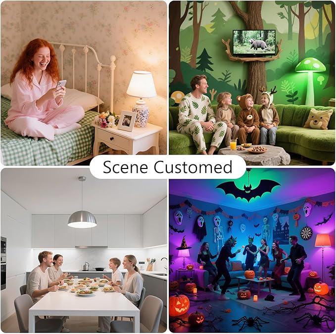 - 【Multiple Preset Scenes】Instantly add a festive atmosphere to your space! Select Christmas, Halloween, or dinner scenes via the Daybetter APP, and the smart light bulbs will perfectly adapt to any occasion