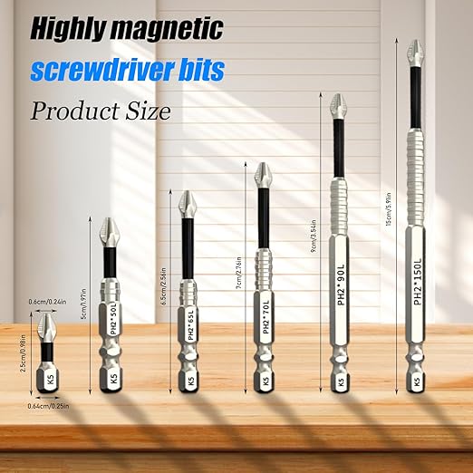 - 6 Length Options & 9 Size Variants:This high magnetic screwdriver drill bit set includes 6 lengths (25–150mm) and 9 screw sizes for versatile use in assembly, home repair, electronics, and other precise applications
