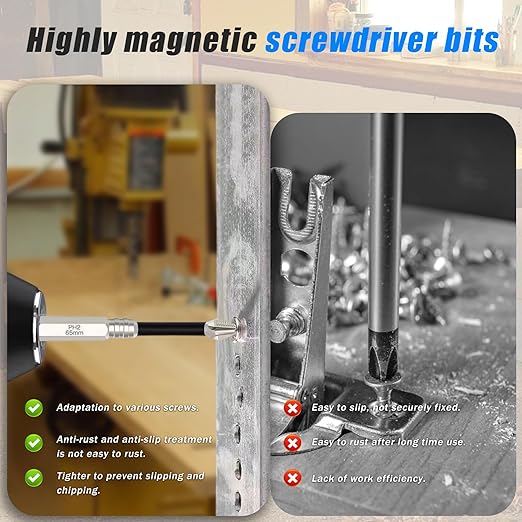 - Torsion-Optimized for Power Tools:Designed with torsion absorption, the magnetic screwdriver drill bit set minimizes stress during high-torque use—ideal for electric tools requiring smooth and safe screw engagement