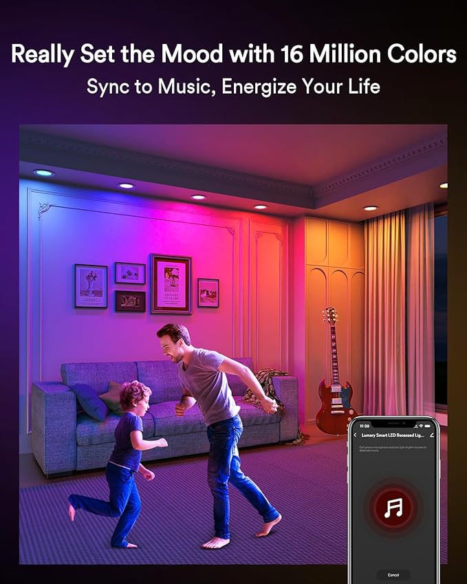 - 【Convenient Smart Control】①Set your own schedule to turn off/on ②Group control - Control the same kinds of recessed lights in single/several rooms at the same time ③Remote to control LED recessed light anytime and anywhere through the Lumary APP ④Share the device with your family and enhoy the fun of smart lights bulbs together ⑤With memory, it will stay at the last setting you changed