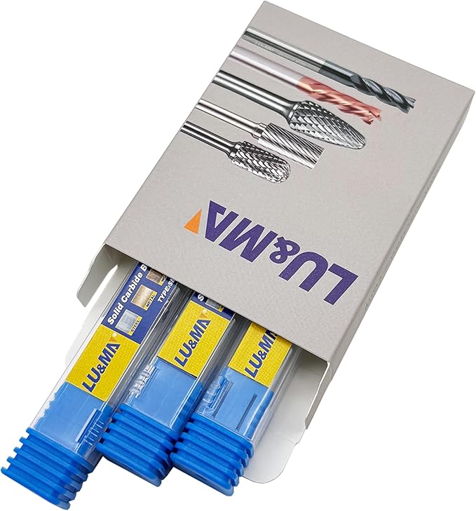 LU&MN SM-5 Tungsten Carbide Burr Rotary File, 3PCS, 25° Pointed Cone, Double Cut, 1/4'' Shank, 1/2'' Cutter Dia, 1'' Length, for Die Grinder Drill
