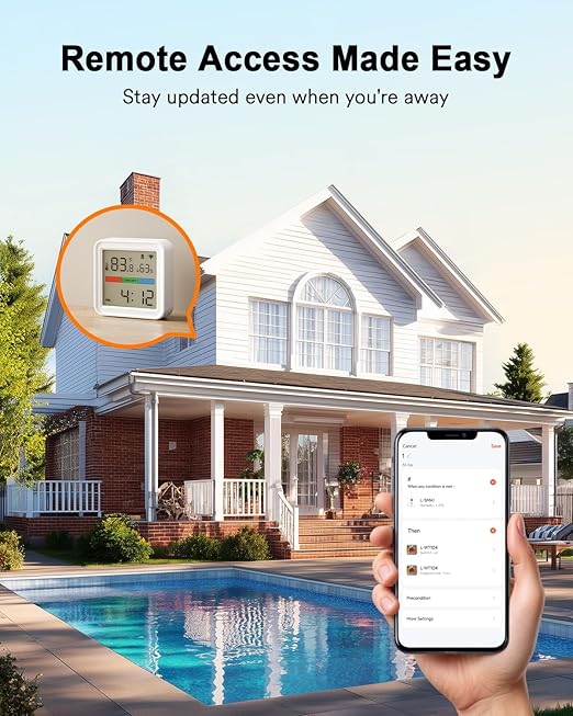 - Remote Monitoring Made Easy: Stay effortlessly connected with dual 2.4GHz WiFi and Bluetooth support. This smart WiFi thermometer hygrometer sensor works seamlessly with the Lumary App, letting you check real-time readings anytime, anywhere. Whether you’re away on vacation or just in the next room, this room temperature monitor keeps your indoor climate at your fingertips. Note: Only compatible with 2.4GHz Wi-Fi networks; 5GHz is not supported