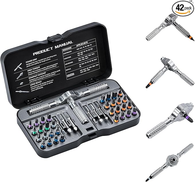 - A surprise gift for DIY enthusiasts – Our ratcheting screwdriver set is perfect gift for DIY enthusiasts. Small size is suitable for carrying around. The black phosphate coating has a beautiful industrial appearance. It comes with a sturdy storage box to clearly classify different bits, which is also convenient to carry when repairing outside and not easy to lose