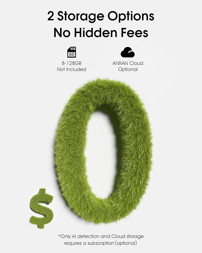 - Free Cloud Storage & 2-Year War* ranty: This Anran light wireless security camera has 2 storage modes,LIFETIME FREE cloud storage base service (record 6s & 7 days loop coverage permanently) or SD card (SD card is not included).We offer a 2-year war* ranty for ANRAN cameras.If you have any problem, please contact us.Our professional technical team and after-sales team will be at your service within 24 hours on weekdays.