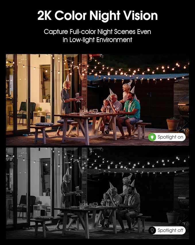 - 2K QHD Video & Color Night Vision: The security camera outdoor offers a 3MP image quality,1.5 times better than 1080p cameras.Great image and video quality with 33ft visible range. You can view sharp color night vision even in poor light with this home security camera.