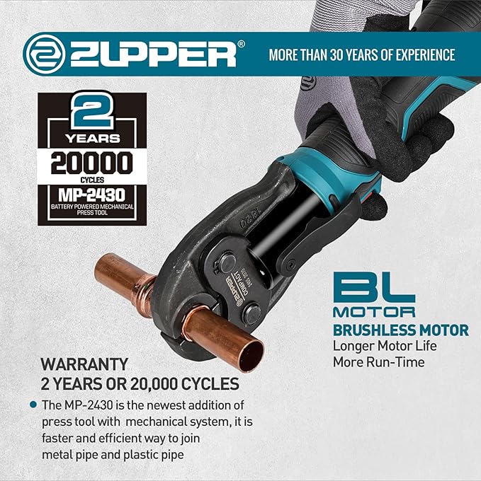 - ZUPPER Compact Press Tool Kit: Includes jaws for copper pipe 1/2", 3/4", 1", 1 1/4" American Standard copper pro press fittings. (PLEASE NOTE: If you need to press other types of pipe fittings, please purchase the corresponding press jaws separately.) Compatible with ZUPPER and US brands' Compact Series jaws, rings, and actuators. Tool can press up to 1 1/4" copper pipe, 1" carbon steel pipe, 1 1/4" stainless steel pipe, 1 1/2" PEX pipe.