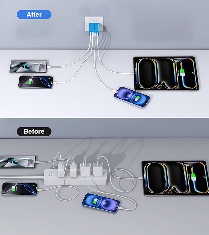 - Universal Compatibility:Due to the special 4-port,the USB charger is compatible with almost all electronic devices,charging adapter for iPhone 16/16 Pro/16 Pro Max/16 Plus/15/15 Pro /15 Pro Max/14/14 Pro/14 Pro Max/13/13 Mini/13 Pro Max/12/12 Pro Max/12 Pro Max/12 Mini/SE 2020/11/11 Pro/11 Pro Max/XR/XS/X/8/7/Pro/Mini,Samsung Galaxy S23/S22/S21/S20/S10/S9/S8/A12/A13/A22/A32/A52/A53/A71/Note 20 10,Tablets,LG,Motorola,Google Pixel and other digital devices compatible