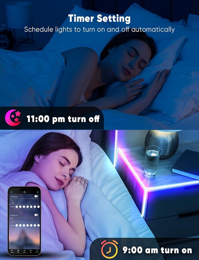 - 【Sync with Music】Experience the ultimate entertainment destination with the neon led strip light! Its built-in microphone detects music and gaming audio, and the lights react in real time to create an exciting atmosphere. Enjoy a unique and thrilling experience every time you play, party, or just relax. Add more fun to your leisure time and make your home the perfect place for entertainment!