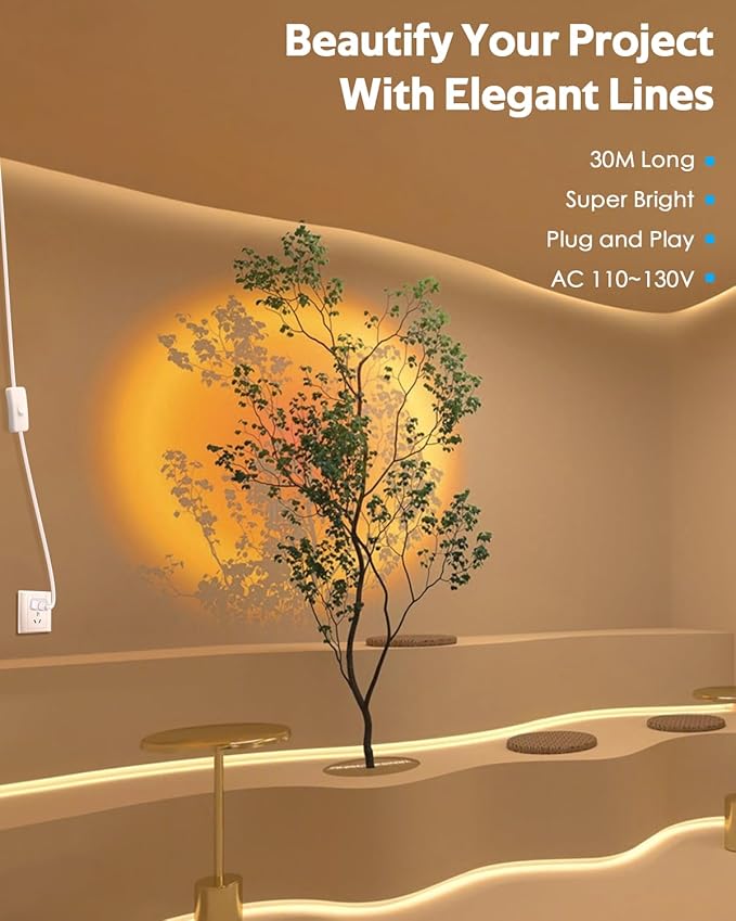 - 【Ultra Bright LED Strip Light】Compared with low-voltage LED strips, 110V-130V high-voltage led strips light use advanced high-voltage AC technology to provide higher brightness and more uniform lighting effects, completely eliminating dark areas and creating a bright and comfortable spatial atmosphere. In addition, it can be directly connected to AC 110V-120V household power supply, plug and play. During use, there is no voltage drop and the brightness remains consistent from start to finish.