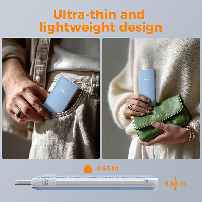 - Compact & Portable Design with 10000mAh Capacity: Measuring just 0.67 inches thickness and weighing 7.6oz, this slim charging battery is as compact as a phone case, making it easy to carry in your hand or bag. Despite its small size, it boasts a powerful 10000mAh battery capacity to keep your devices fully charged on the go.