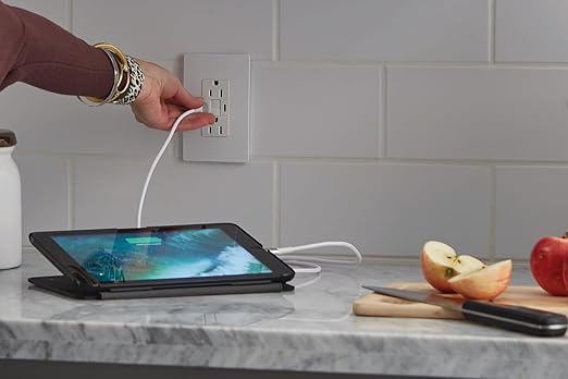 - Use - Charge without bulky AC adapters using this gfci usb outlet with two 5-volt DC USB ports that work with USB 2.0 & 3.0 compatible devices and 3.1C total USB charging capability shared between both ports.