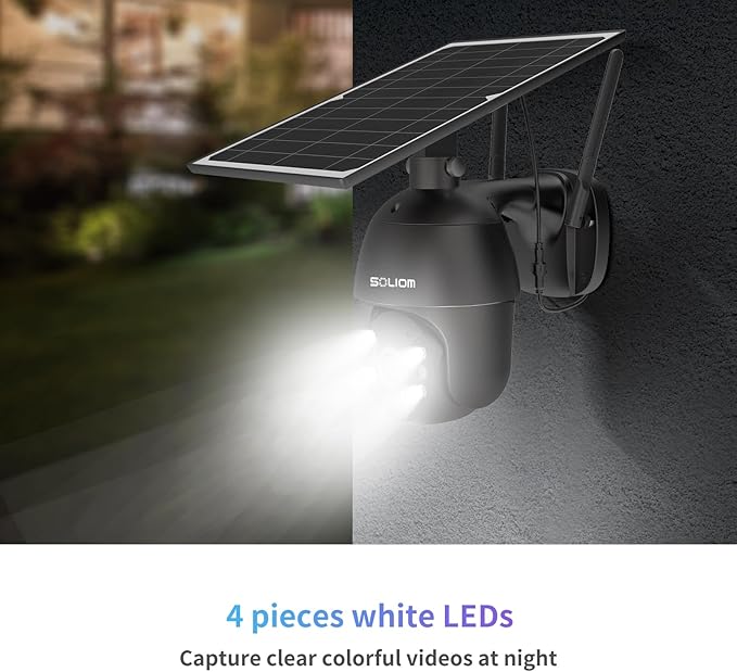 - Pan Tilt & Wide Angle: The S600 4G LTE security camera outdoor can turn its head 320° horizontally and 90° vertically pan and tilt, and 3X digital Zoom, which provide you a much broader and flexible view of cameras for home security,even can nearly provide complete coverage without blind spots. You can remotely control the pan-tilt feature via the soliom+ App, and always keep a watchful eye on your property.
