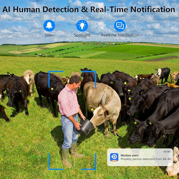 - Motion Detection and Two-Way Audio: Cinnado cellular security camera outdoor is equipped with advanced PIR and AI human detection technology. Therefore, when the outdoor camera wireless detects a person, the app instantly sends a real-time notification to your smartphone, you can view the screen and immediately initiate a conversation with the person on the camera's end from anywhere via the two-way audio feature. Please note that the security camera outdoor does not support motion tracking.