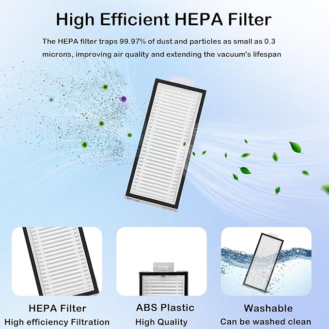 - Durable performance: Tangle-resistant rubber main brush, deep-cleaning side brushes, and hepa filters, maintain original vacuum efficiency