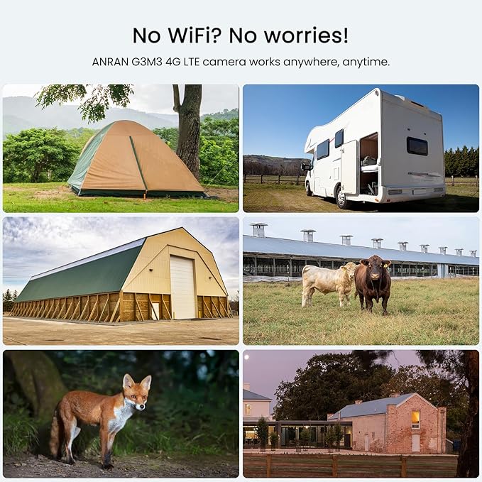 - 【Inculdes SIM Card & 7-Day Unlimited Data Trial】The SIM card provided by ANRAN is included in the camera and provided 7-day unlimited data trial. It’s compatible with multiple mobile data network in USA, so you can insert a 4G LTE SIM card and install it anywhere, 4G LTE ANRAN Camera supports AT&T, T-Mobile, Verizon etc Carrier.