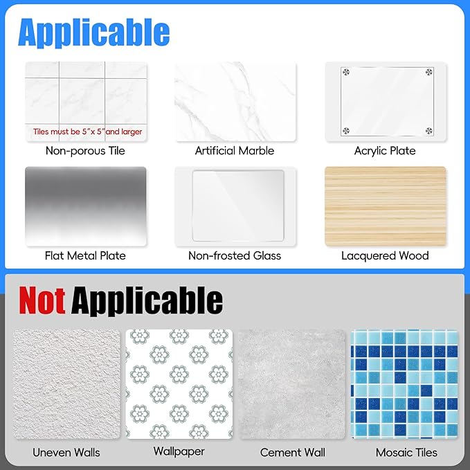 - WARM TIPS: For the safety of the elderly, please check the suction of the grab bar before each use.Please note that the handrail is only suitable for non-porous, flat and smooth surfaces such as tile, glass, stainless steel, acrylic and metal. Please avoid installing on porous surfaces or grout lines. These grab bars for wall are only intended to assist and properly support some of your body weight; do not rest your entire body on the shower door handle.