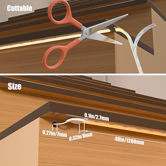 - Easy Installation: The 48" flexible COB LED strip features a strong adhesive backing for quick and hassle-free installation on 42" or 48" wide stair treads. Designed with 1" cutting units, it allows for effortless trimming to achieve a perfect fit.