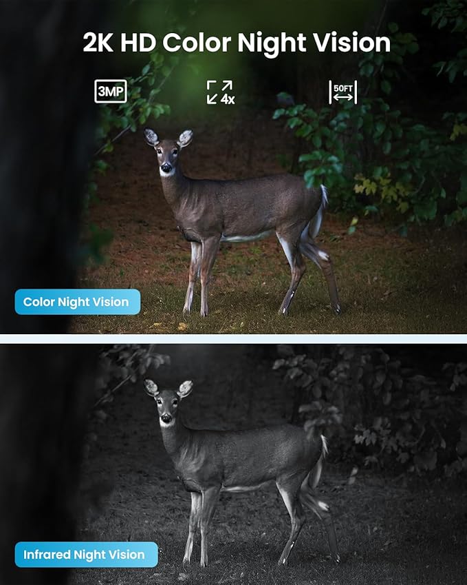 - PIR Detection & Two-Way Audio: Equipped with advanced PIR motion detection, the camera accurately detects human movement and instantly sends real-time alerts to your device, minimizing false alarms triggered by animals or environmental changes.The two-way audio feature allows clear communication through the camera, whether to greet visitors, warn intruders, or interact remotely.