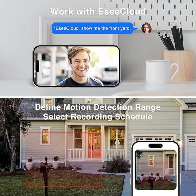 - Special Feature : Full Color Night Vision, Two-Way Audio, Work with Eseecloud APP