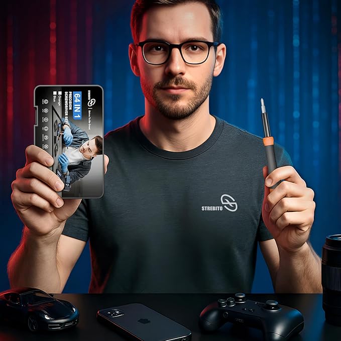 STREBITO Precision Screwdriver Set 64 in 1 Small Screwdriver Set with Torx, Triwing, Pentalobe Star, Mini Repair Tool Kit for Computer, PC, Laptop, Phone, PS5, XBOX, Switch, Eyeglasses, Electronic