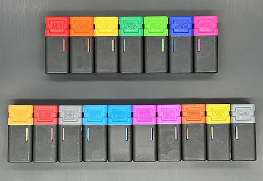- 17 interchangeable mandrel/nosepiece sets( included size in Metric M3 M4 M5 M6 M8 M10 M12 and SAE 6-32,8-32,10-32,10-24×2, 1/4-20×2, 5/16-18, 3/8-16,1/2-13) and 256pcs rivet nuts . The M8 mandrel is already on the tool, so the plastic box is empty