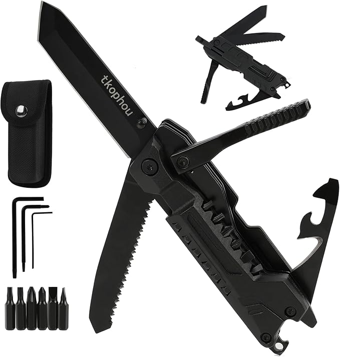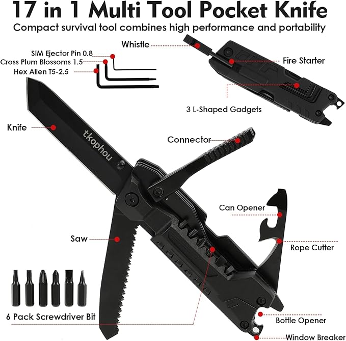 Multitool Knife, Multi Tool Pocket Knife for Men, 17-in-1 Folding Knife Camping Multitool for Hiking, Fishing, Survival, Men Gifts for Birthday Christmas