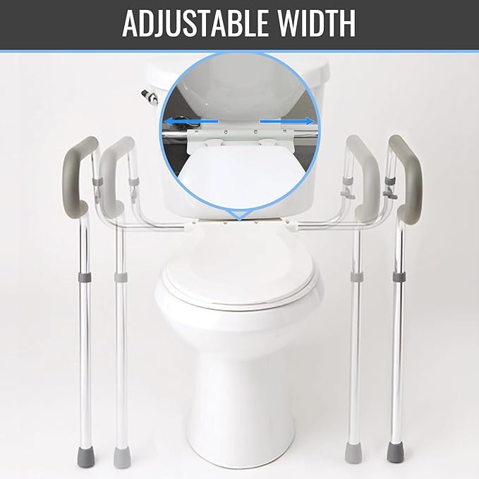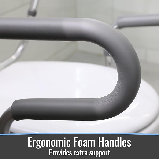 HealthSmart Adjustable Toilet Safety Rails for Seniors, Medical Grade - HandicapToilet Safety Frames for Disabled, Non-Slip Padded, 300lb Capacity Commode Chair with Arms, Toilet Helper for Elderly