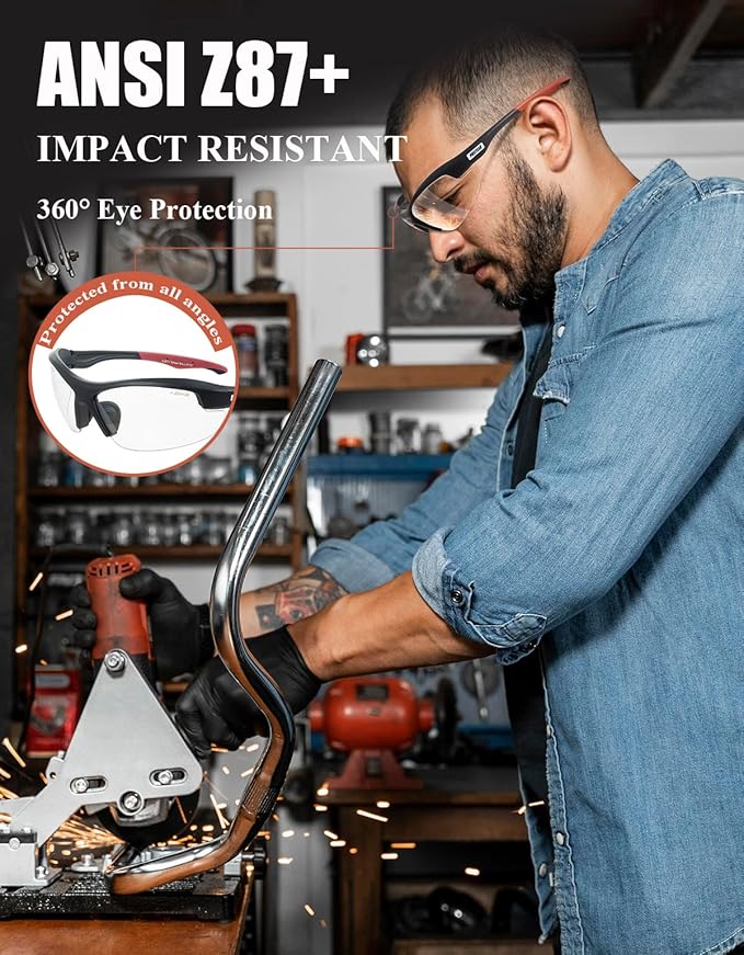 - [CERTIFIED EYE PROTECTION–ANSI Z87.1 APPROVED] Rigorously tested to meet ANSI Z87.1 standards, these safety glasses offer reliable protection against impacts, flying debris, and high-velocity particles—ideal for industrial, lab, and workshop use.