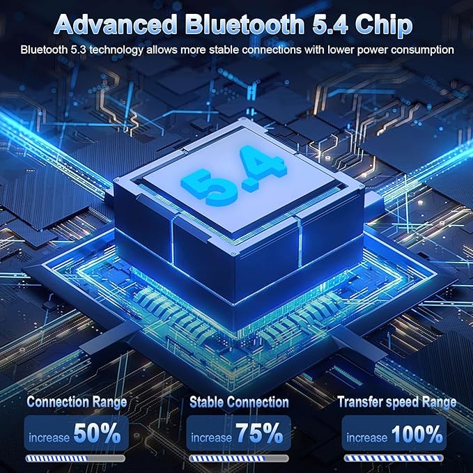 - 2025 Bluetooth 5.4 Technology: A97 Bluetooth wireless earbuds are equipped with Bluetooth 5.4 chips. This makes pairing to devices seamless with reduced latency and increased battery life, enabling and reducing sound latency and providing a more stable connection(15m), faster pairing, and universal compatibility. Experience perfect sound quality during leisure, listening to music, exercising, commuting, or using these running Wireless headphones to answer phone calls.