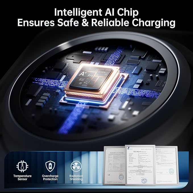 - Safe and Fast Charging: Our wireless charger is equipped with a QC3.0 fast charging adapter and charging cable, supporting a maximum power of 30W. It allows for simultaneous fast charging of up to three devices. The wireless charging feature employs a fill-and-stop technology that temporarily pauses charging when the device is fully charged. It also incorporates real-time temperature monitoring to ensure both efficient and safe charging.