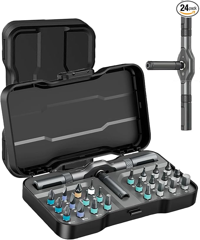 24 in 1 Magnetic Ratchet Screwdriver Set, DIY Mini Screwdriver Set, Multi Bit Magnetic Drive Set with Detachable Ratchet Handle, Portable Precision Repair Tool Kit for Furniture Computer Bicycle