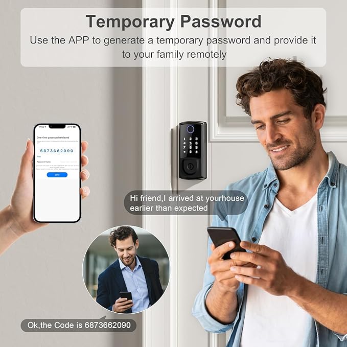 - Smart Door Lock with APP Control:With a remote control from the Tuya APP, you can generate a temporary password and share it with your family and guests.Enjoy easy setup, access management, real-time notifications and event history.Suitable for homes, apartments, offices, and hotels