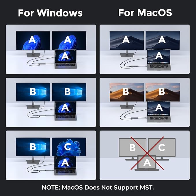 - Dual 4K of Display Support: The usb docking station supports dual 4K@30-60Hz, Ideal for DP1.4 laptops to extend to dual 4K@30-60Hz displays (Note: MacBook supports only one extended monitor).