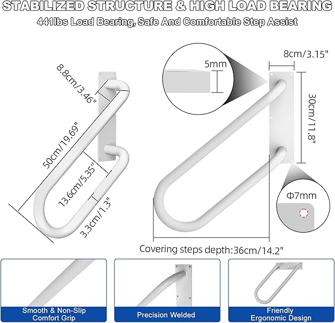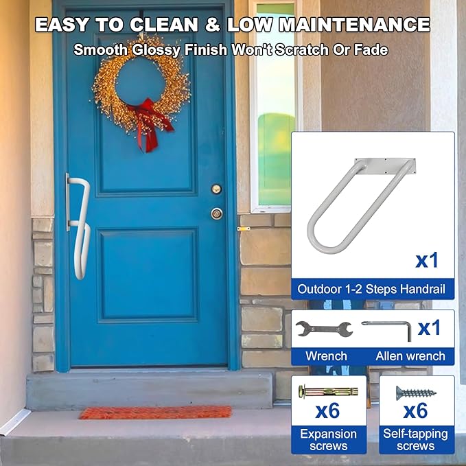 - EASY TO INSTALL & MAINTAIN–Door jamb side mount mount single step handrail to wood with 6 self-tapping screws or to concrete with 6 expansion screws (all included). Simply mark the spot, drill holes, and secure the rail. Smooth, non-slip, scratch-resistant, and easy to clean. Just wipe with a cloth to remove dust.