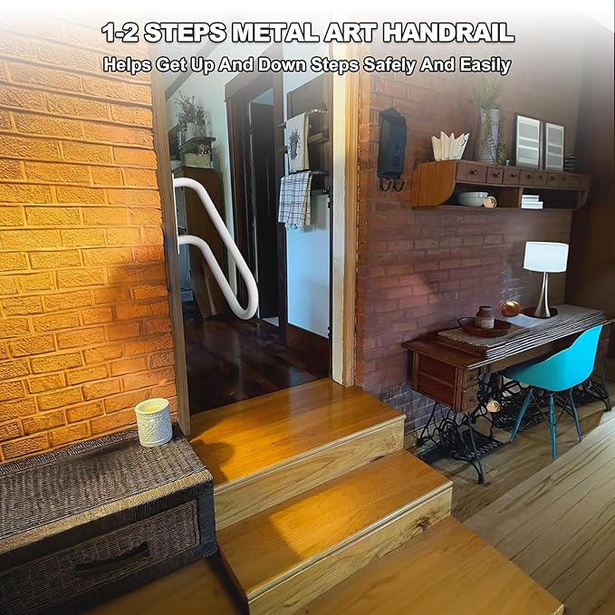 - USER-FRIENDLY & STABLE–1-2 step handrail designed with a 3.3 cm (1.3") diameter, 2 mm thick pipe, and a sturdy 5 mm large base (11.8" x 3.15"), this handrail offers a secure, comfortable grip. DIY paintable to match your style. Outdoor stair metal handrail suitable for concrete, brick, or wood walls—perfect for indoor or outdoor steps, adding safety and confidence to any home.