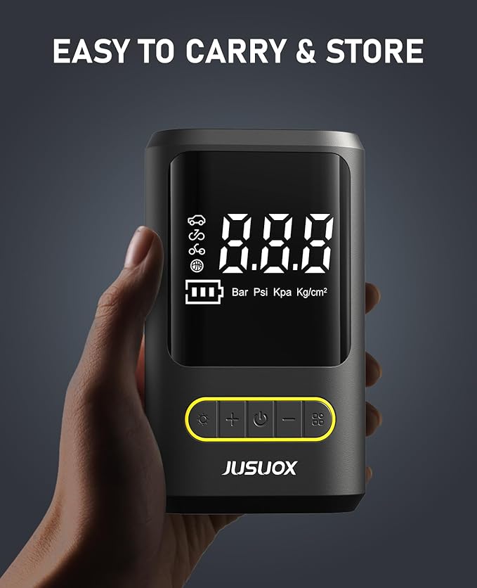 - Powerful & Long-Lasting : Equipped with a high-capacity rechargeable battery, our portable air pump delivers consistent, reliable power for all your inflation needs. Engineered for durability, it ensures quick and efficient tire refills, keeping your journeys smooth and worry-free. Whether for daily or emergency use, its long-lasting performance provides peace of mind on every trip. Stay powered, stay safe—wherever the road takes you.