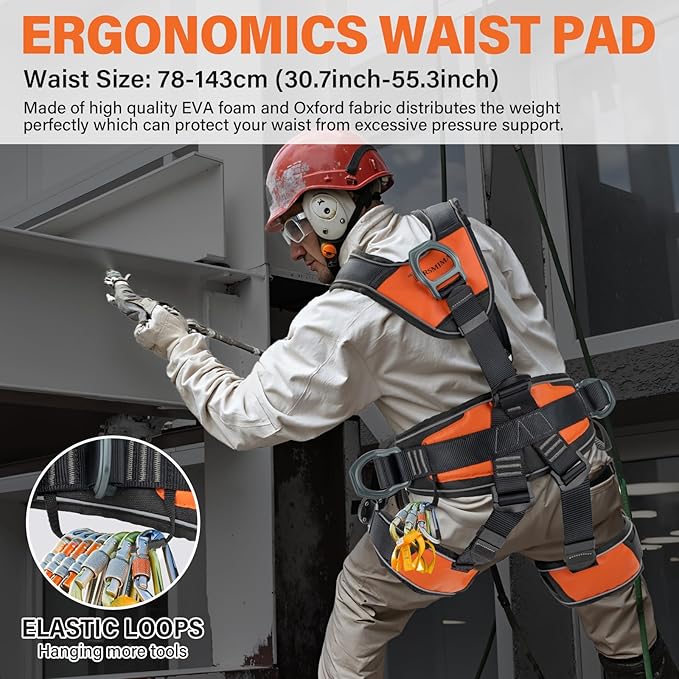 - Detachable Design Two Mode:Engineered for professional climbers and adventurers, this detachable full-body climbing harness combines military-grade nylon webbing with reinforced stitching to withstand extreme loads (tested up to 5000 lbs). Rock half body harness mode also extraly fit for climbing. Waist size: 78-143cm(30.7inch-55.3inch) Leg size: 54-97cm(21.2inch-38inch), fit weigh 130-350 pounds (59 to 159 kg)
