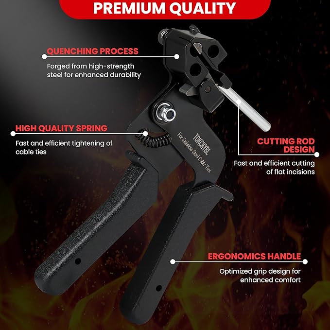 - Ergonomic & Effortless Design: Non-slip TPR handle and smooth trigger reduce hand fatigue. Tighten, cut, and trim ties cleanly in seconds—smooth edges! Built for mechanics, electricians, and DIY enthusiasts