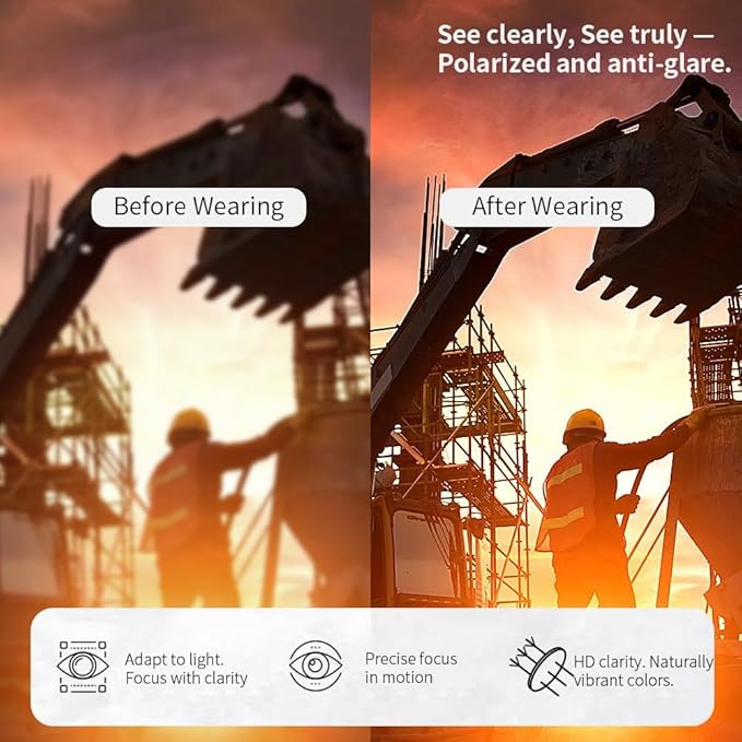 - Polarized Anti-Glare Lenses – Reduces harsh reflections from water, snow, and roads for clearer, safer vision during driving and outdoor activities.